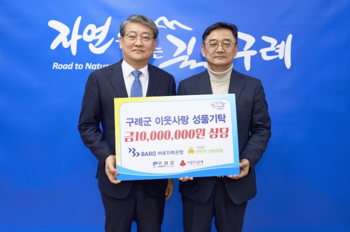 구례군 관계자는 “어려운 경기 여건 속에서도 지역의 돌봄이 필요한 이웃들을 위해 꾸준히 사회공헌 활동을 이어와 주셔서 감사드린다”며, “기탁해 주신 성품은 도움이 필요한 곳에 소중히 사용하겠다”고 말했다.