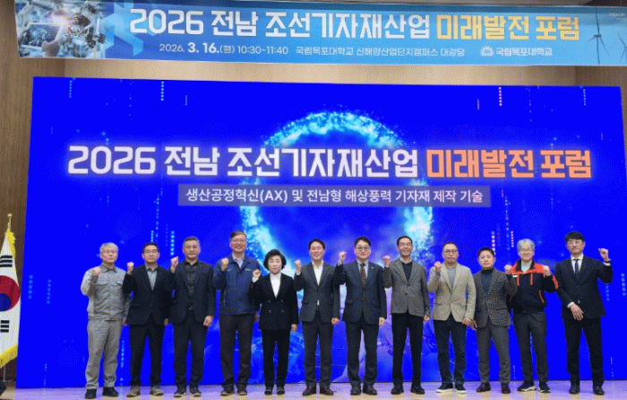 포럼에서는 천광산 목포대 교수가 ‘AI 기반 생산공정혁신(AX) 기술의 방향성’을 주제로 발표하고, 산업 전환 방향과 현장 의견을 공유했다. 해상풍력 하부구조물 운송 문제 해결 방안과 해외 기능인력 양성사업, 국민성장펀드 소개도 이어졌다.