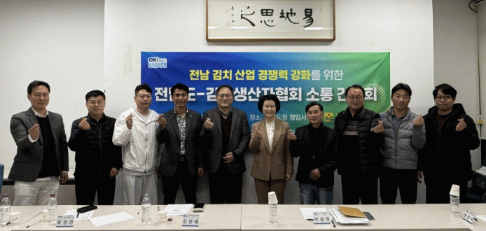 간담회에는 전남도 농식품유통과장, 전남김치생산자협회 김진태 회장과 회원사 관계자 10여 명이 참석했다. 이들은 행정통합에 따른 김치 산업 지원체계 일원화에 대비해 전남 김치만의 우수한 원재료와 전통을 계속 유지할 구체적 협력 방안을 논의했다.