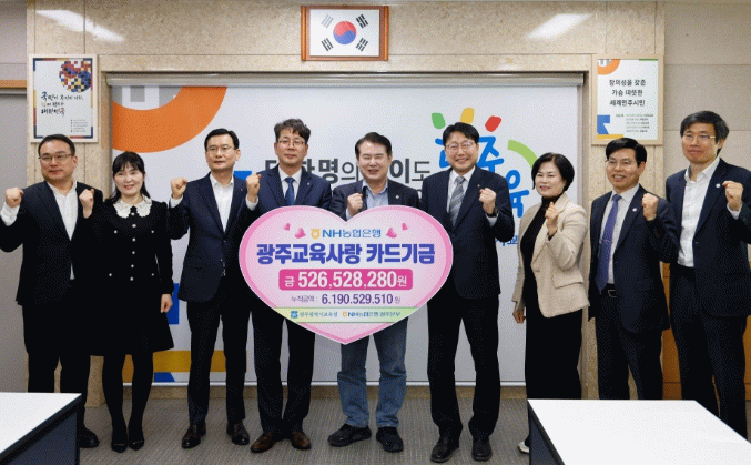 NH농협은행 광주본부는 시교육청, 관련 기관, 각급 학교에서 사용하는 법인카드 사용액의 1.0%, 직원 개인카드 사용액의 0.3%를 적립금으로 조성해 매년 시교육청에 전달하고 있다.