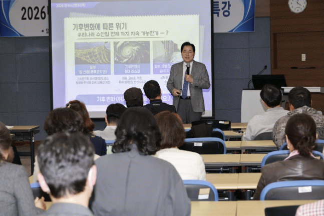수료식과 입학식 이후 신우철 군수는 입학생들을 대상으로 ‘완도군 해양 수산 기후변화’를 주제로 특강을 진행하며 수산물 생산 방식 전환 등 수산업의 장기적 비전을 제시했다.