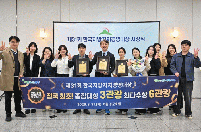 김이강 서구청장은 “이번 종합대상 수상은 28만 서구민과 1천여 공직자가 함께 만들어낸 혁신의 결실”이라며 “앞으로도 생활밀착, 현장중심, 눈높이 행정을 통해 대한민국 지방자치의 새로운 기준을 계속 만들어가겠다”고 밝혔다.