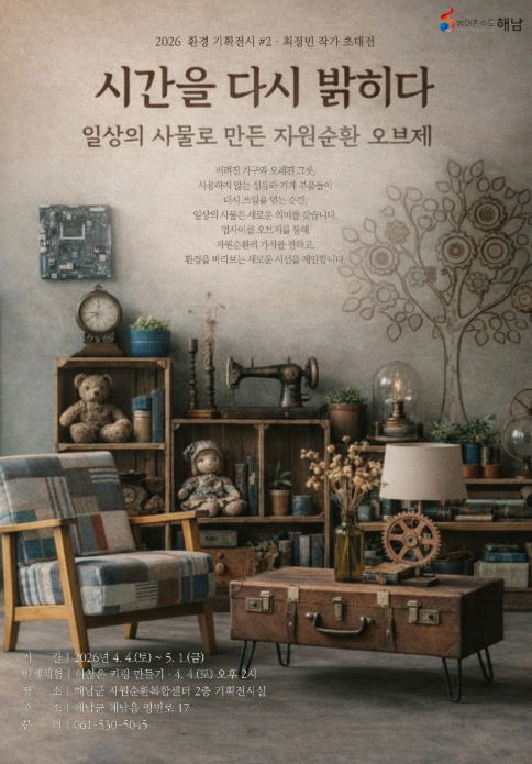 한편, 전시는 해남군자원순환복합센터 2층에서 진행되며 누구나 자유롭게 관람할 수 있다.
