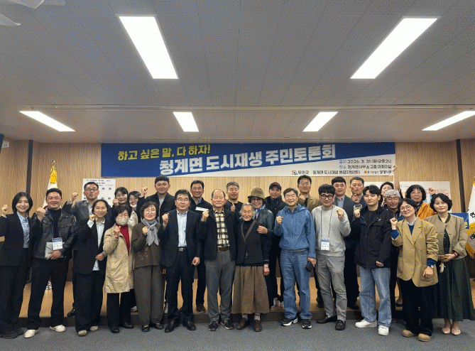이번 토론회는 청계면 지역특화 도시재생사업 추진에 앞서 주민 의견을 수렴하고 사업 방향을 구체화하기 위해 마련됐다.