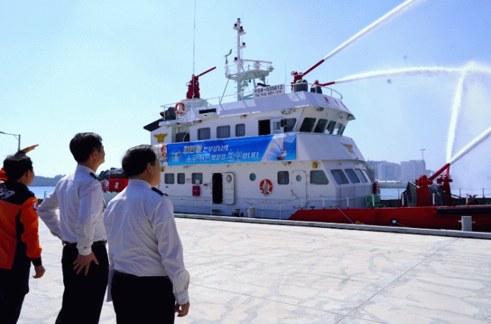 일정 첫 순서로 소방정대를 방문해 전남 해상을 관할하는 소방정 '전남705호'에 승선, 방수포 시연을 참관하고 선박 가동 상태를 직접 살폈다. 24시간 출동 태세를 유지 중인 현장 대원들의 노고를 격려하며 빈틈없는 화재·구조·구급 대응 체계 유지를 당부했다.