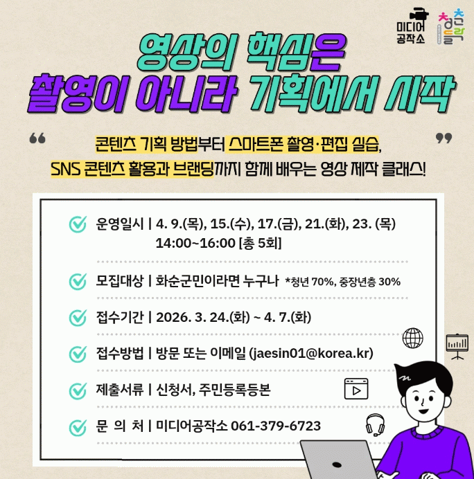 조미화 인구청년정책과장은 “SNS와 숏폼 콘텐츠 영향력이 커지는 만큼, 누구나 쉽게 영상 제작을 경험할 수 있도록 교육을 마련했다”라며, “봄꽃 축제 현장과 연계한 실습을 통해 화순의 다양한 매력을 자신만의 콘텐츠로 표현하는 계기가 되길 기대한다”라고 말했다.