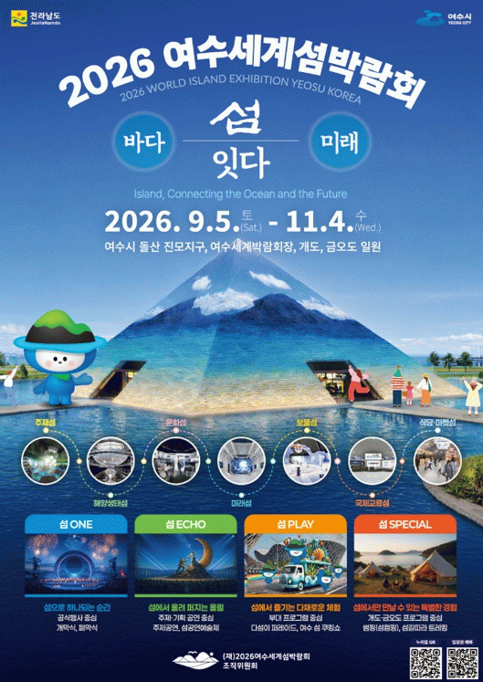 한편, 2026여수세계섬박람회는 ‘섬, 바다와 미래를 잇다’를 주제로 오는 9월 5일부터 11월 4일까지 여수 돌산 진모지구, 개도·금오도 일원, 여수세계박람회장에서 열리며, 국내·외 관람객 300만 명의 관람객을 목표로 추진하고 있다.
