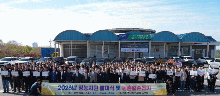 13일 나주시와 농협중앙회 나주시지부에 따르면 이날 나주배박물관에서 ‘2026 유관기관·범농협 영농지원 발대식 및 농촌일손돕기 행사’를 개최했다.