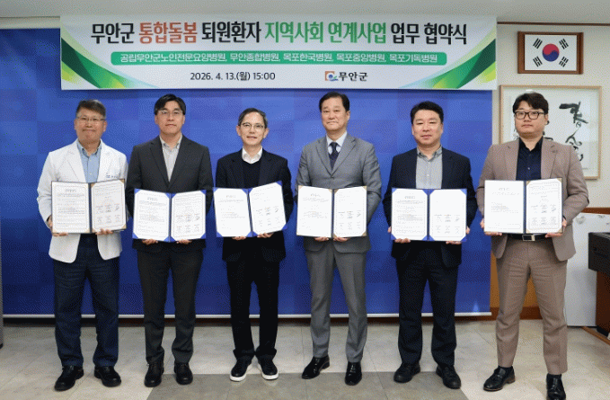 김병중 무안군수 권한대행은 “이번 협약은 퇴원 환자가 병원에서 가정으로 원활히 복귀할 수 있도록 지원하는 중요한 출발점”이라며 “앞으로도 촘촘한 통합돌봄 체계를 구축해 군민 누구나 필요한 돌봄을 받을 수 있도록 최선을 다하겠다”고 밝혔다.