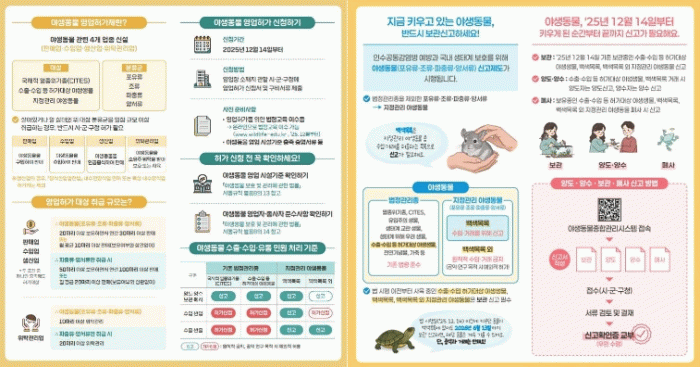 또한 지난해 12월 13일 이전부터 사육하고 있는 경우, 오는 6월 13일까지 ‘야생동물종합관리시스템 ’보관 신고를 해야한다.
