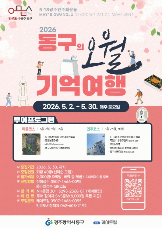 동구 관계자는 “이번 프로그램을 통해 5·18민주화운동의 의미를 널리 확산하고자 한다”며 “5·18 정신의 헌법 전문 수록 추진 등 시대적 흐름 속에서 오월 정신이 지역을 넘어 우리 사회 전반으로 공유·계승되는 계기가 되길 바란다”고 말했다.