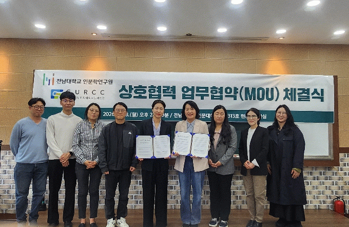 17일 전남대학교에 따르면, 인문학연구원(원장 류도향)은 지난 4월 13일 오후 2시 30분 인문대학 1호관 현공세미나실에서 광주광역시도시재생공동체센터(대표이사 손명희)와 협력 및 교육 활성화를 위한 업무협약(MOU)을 체결했다.