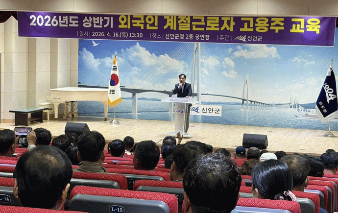 신안군청 2층 공연장에서 열린 이번 교육은 올해부터 대폭 강화된 고용주 의무 사항을 현장에 안착시키기 위해 마련됐다. 특히 올해 새롭게 도입된 ‘3대 의무 보험’ 가입에 대한 상세 안내가 중점적으로 진행됐다.