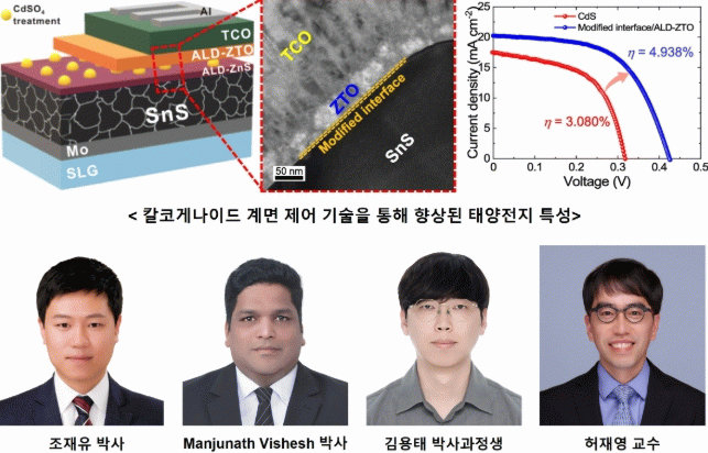 23일 전남대에 따르면 공과대학 신소재공학과 허재영 교수 연구팀이 친환경 박막태양전지 소재인 황화주석(SnS)의 성능 한계를 극복할 수 있는 계면공학 기술을 개발했다.