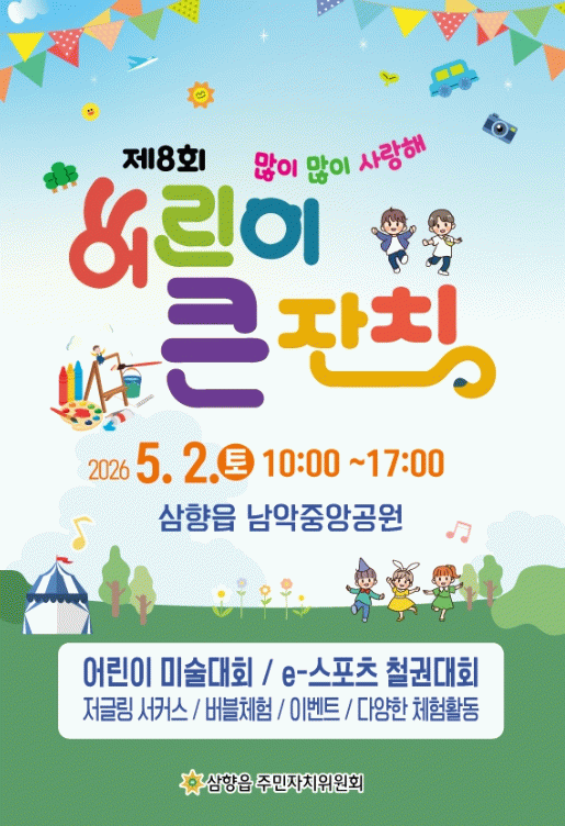백승국 주민자치위원장은 “어린이들이 주인공인 행사인 만큼 안전을 최우선으로 두고 준비하고 있다”며 “가족과 함께 즐거운 추억을 만들 수 있도록 다양한 프로그램을 마련한 만큼 많은 관심과 참여를 바란다”고 말했다.
