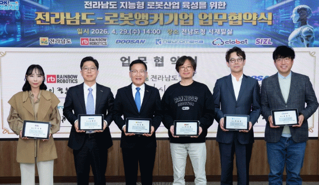 강위원 부지사는 “로봇산업은 인공지능이 현실 세계에서 인식·판단·행동으로 구현되는 피지컬 AI의 핵심 산업”이라며 “협약을 계기로 전남을 산업현장 중심의 로봇 활용 중심지로 도약시키겠다”고 말했다.