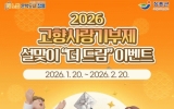 이종현 기자2026.01.21 17:34[호남미디어협의회]장흥군은 설 명절을 앞두고 고향사랑기부제 활성화를 위해 1월 20일부터 2월 20일까지 ‘2026 설맞이 고향사랑기부제 더 드림 이벤트’를 진행한다. 이벤트 기간 중 ‘고향사랑e음’을 통해 장흥군에 10만 원 이상 기부하면 별도의 신청 절차 없이 자동으로 이벤트에 응모된다. 해당 조건을 충족한 기부자 전원에게는 모바일 상품권 5,000원이 경품으로 제공된다. 또한 이벤트 종료 후에는 무작위 추첨을 통해 10명을 선정, 5,000원권 모바일 상품권을 추가로 증정하는 혜택도 마련돼 있어 최대 1만 원 상당의 경품...