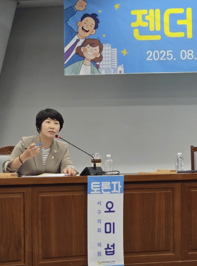 토론자로 나선 오미섭 의원은 서구에서 추진 중인 성인지 통계 구축, 아빠돌봄, 여성안전 등 양성평등 정책 사례를 소개하며 “마을 활동 안에서 젠더 감수성을 높이기 위한 적극적인 논의가 필요하다”고 강조했다.