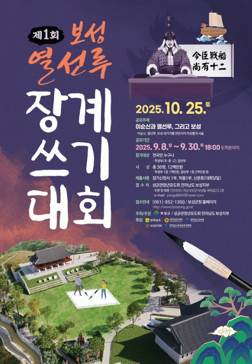공모 주제는 ‘이순신과 열선루, 그리고 보성’으로, 전국의 초·중·고 학생과 일반인이 모두 참여할 수 있다.