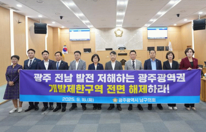 이에, 남구의회 의원 일동은 “광주전남 발전을 가로막는 광주광역권 개발제한구역을 전면 해제”하고 “지역 개발 권한을 해당 지자체에 즉시 이양할 것”을 강력히 촉구했다.