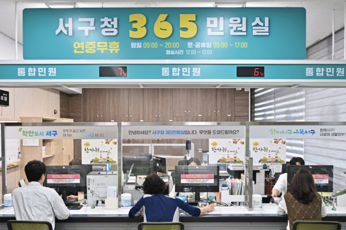 서구는 추석 연휴인 3일부터 9일까지 일주일간 상무지구 롯데마트맥스 1층에 위치한 ‘365민원봉사실’을 오전 9시부터 오후 5시까지 정상 운영한다고 밝혔다.