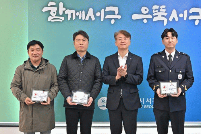 서구는 5일 서구청에서 고(故) 김신자 씨 유족, 해양경찰관 문호준 씨, 서창동 자생단체 연합회 ‘서창해온’이 함께한 ‘나눔리더100(Giving Leaders Club)’ 가입식을 열고 감사의 뜻을 전했다.