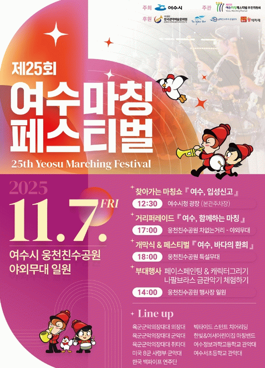 올해로 25회를 맞는 이번 축제에는 9개 마칭밴드가 참여해 수준 높은 음악과 관악 퍼포먼스를 선보이며 시민과 관광객 모두에게 특별한 감동을 선사할 예정이다.