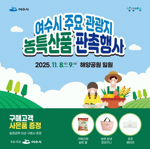 특히 판촉행사가 열리는 8일 밤에는 ‘2025 여수밤바다’ 불꽃축제가 개최돼 관광객과 시민들이 낮에는 지역 농특산물을 구매하고 밤에는 불꽃축제를 즐길 수 있는 특별한 기회가 될 것으로 기대된다.