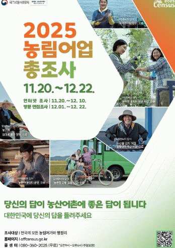 광산구 관계자는 “이번 농림어업총조사 결과는 우리 지역 농림어업의 경쟁력 강화와 농 · 산 · 어민의 삶의 질을 높이는 데 중요한 기초 자료가 될 것”이라며 “대상 가구의 적극적인 참여와 정확한 응답을 부탁드린다"고 당부했다.
