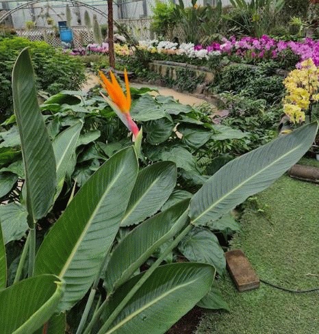‘천국의 새’로도 불리는 극락조는 강렬한 주황빛 꽃과 푸른 꽃대가 대비를 이루며, 마치 새가 날개를 펼친 듯한 독특한 형태로 이국적이고 생동감 있는 볼거리를 선사한다.