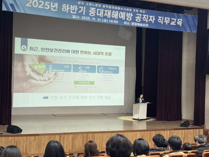 이번 교육은 안전보건관리책임자 및 직원 대상으로 공공기관의 안전보건관리 수준을 높이고 중대재해 예방 역량을 강화하기 위해 마련됐다.