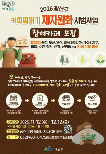 참여를 희망하는 커피전문점은 12월 12일까지 광산구 누리집이나 정보무늬(QR 코드)를 통해 신청하면 된다.
