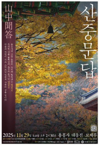 이어, 전통 타악시나위·시조·회심곡을 즉흥적으로 연주하고, 주지 스님의 화답으로 완성된다.