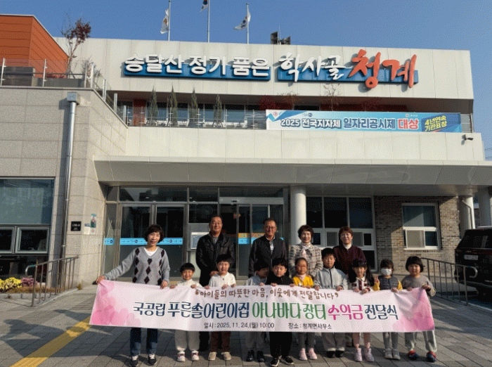 강미간 청계면장은 “어린이집의 따뜻한 나눔에 깊은 감사를 전하며, 아이들의 작은 손길로 시작된 나눔이 지역 곳곳에 큰 희망으로 이어지고 있다”며, “기탁금은 취약계층 지원 등 다양한 지역 복지사업 등에 투명하게 사용될 계획”이라고 전했다.