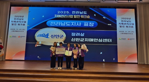 이번 수상은 치매 조기검진 실적, 공공후견사업 추진 성과, 치매안심센터 우수사례 경진대회 심사 결과 등을 종합적으로 평가한 결과로, 신안군의 치매관리사업이 도내 최고 수준임을 인정받았다.