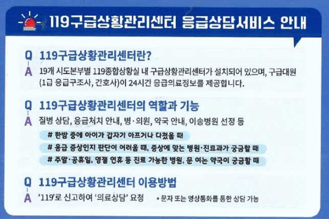 특히, 재외국민을 위한 응급의료 상담 서비스도 운영 중으로, 국경을 넘어 응급상황에 대처할 수 있도록 돕는다.