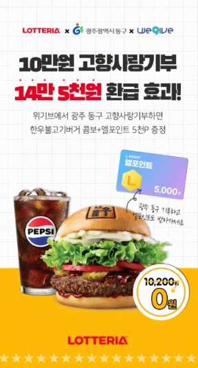 광주 동구에 10만 원을 기부한 참여자는 ▲10만 원 연말정산 100% 세액공제 ▲광주 동구 답례품(기부액의 30% 한도) 제공 외에도, 롯데리아 ‘한우 불고기 버거 콤보’ 쿠폰 1매와 엘포인트 5천 포인트를 추가로 받을 수 있다. 기부자가 실제로 받을 수 있는 전체 혜택 규모는 14만 5천 원 상당으로, 쿠폰과 엘포인트는 매주 목요일 순차적으로 발송될 예정이다.