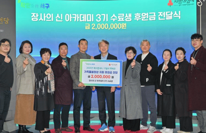 서구는 2일 ‘장사의 신 아카데미’ 3기 수료생들이 가족돌봄청년을 위한 후원금 200만원을 기탁했다고 밝혔다.