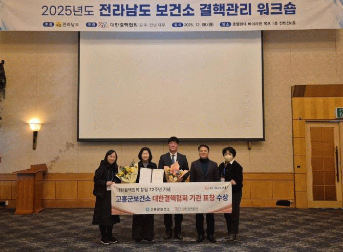 이번 수상은 선제적 검진과 적극적인 결핵 확산 방지 노력을 통해 ‘청정 고흥’을 실현하려는 군 보건소의 노력이 높은 평가를 받은 결과다.