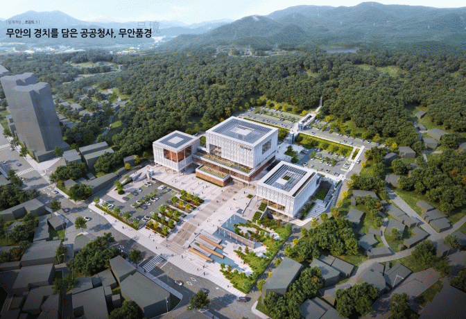 당선작은 무안군 3읍 6면이 지닌 고유한 특성을 건물과 외부공간의 각 요소로 치환하여 지역성과 정체성을 품어내는 무안군 청사의 이미지를 구현했다.