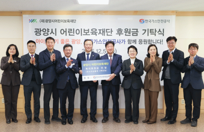 시 관계자는 “우리 아이들을 위해 뜻깊은 나눔을 실천해 주신 한국가스안전공사에 깊이 감사드린다”며 “지역과 함께하는 공공기관의 진정성 있는 참여는 광양시가 ‘아이 키우기 좋은 도시’로 성장하고 아이들의 밝은 미래를 여는 소중한 밑거름이 되고 있다””고 말했다.