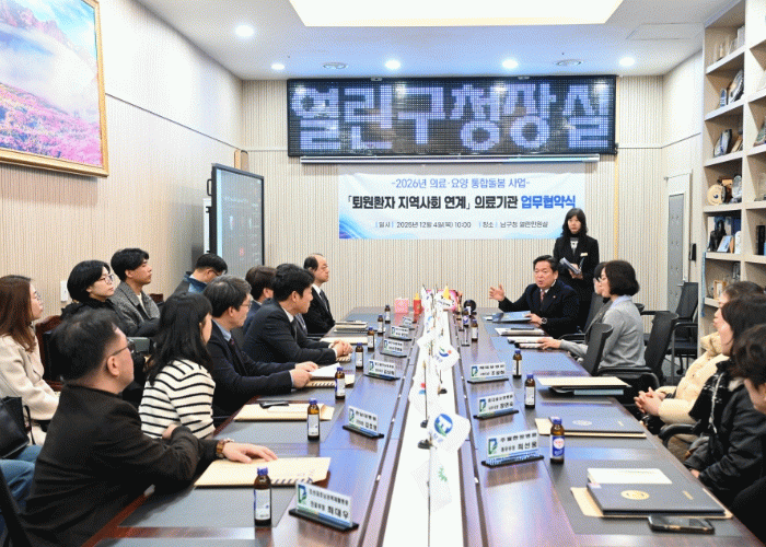 남구 관계자는 “이번 협약은 우리 구의 통합돌봄 체계가 한 단계 더 성장하는 계기가 될 것이다”면서 “주민들께서 구청과 지역 의료기관의 보살핌 속에서 안전하게 회복하면서 안정적인 생활을 이어갈 수 있도록 적극 지원하겠다”고 밝혔다.