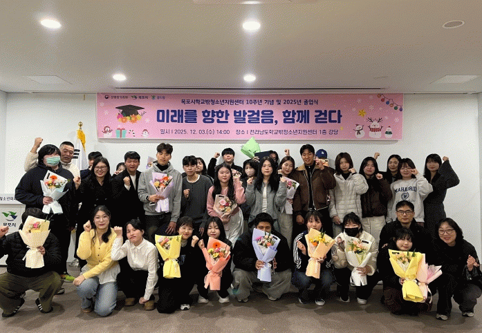 졸업식에서는 청소년들의 노력과 성취를 격려하는 표창이 수여됐으며, 대학생 멘토들에게도 공로 표창이 전달됐다. 또한 목포시학교밖청소년지원센터는 청소년 직업역량 강화 및 자립·취업지원 서비스 분야에서 우수상과 장려상을 동시에 수상하며 그간의 성과를 인정받았다.