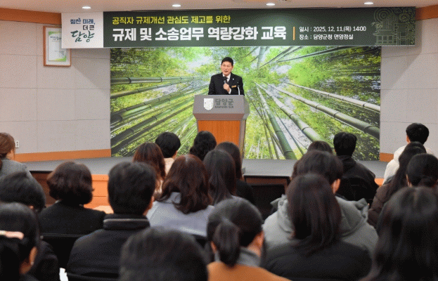 정철원 담양군수는 “규제혁신은 규제를 단순히 줄이는 일이 아니라 군민의 생활 속 불편을 해결하는 과정”이라며 “이번 교육을 계기로 직원들이 군민의 눈높이에서 규제를 개선하고 소송 대응력을 높여 군민 권익을 지키는 행정을 강화하길 바란다”라고 말했다.