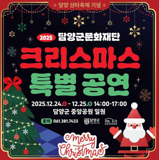 한편, 이번 공연은 담양산타축제 기간 운영되며, 행사 기간 재단 직원과 관계 부서가 협력해 현장 안전관리와 관람객 편의 지원에 나설 계획이다.