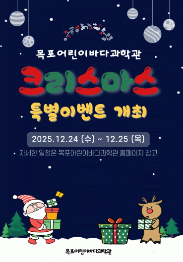 과학관 관계자는 “크리스마스 기간 동안 목포어린이바다과학관에서 진행되는 다양한 체험과 이벤트를 통해 온 가족이 함께 즐기며 행복한 연말 추억을 만들길 바란다”고 말했다.