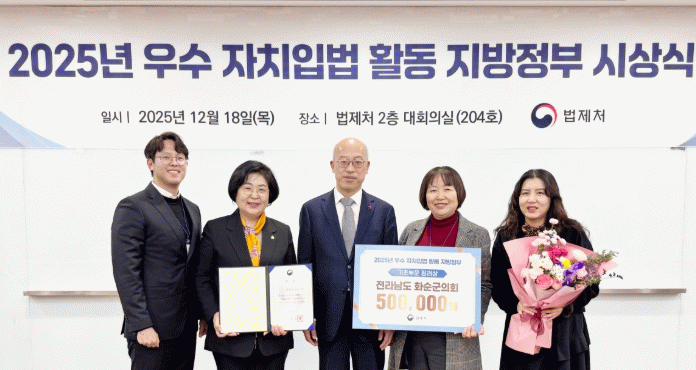 이는 화순군의회 개원 이래 최초로 받는 법제처 우수 조례 수상으로, 군의회의 입법 역량이 전국적으로 인정받은 쾌거다.
