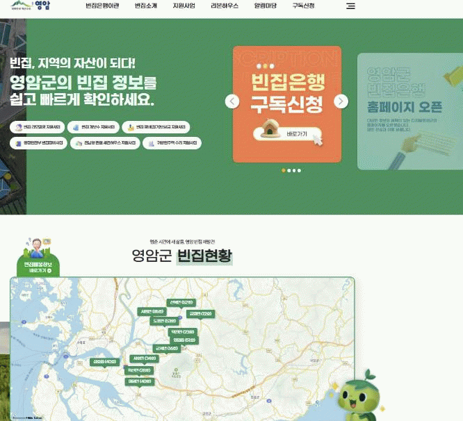 신환종 영암군 도시디자인과장은 “빈집은행은 플랫폼을 넘어 영암군 빈집 정책을 한눈에 볼 수 있는 종합 창구다. 빈집 소유자와 이용을 희망하는 모든 분들의 많은 관심과 방문을 바란다”고 말했다.