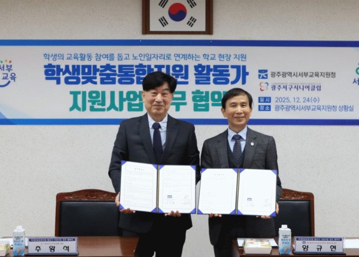 광주서부교육지원청 이성철 교육장은 “협약을 통해 교육 예산의 한계를 극복하고 학생들에게 실질적인 도움을 줄 수 있는 상생 모델을 구축했다”며 “퇴직 교원의 풍부한 교육 경험을 바탕으로 학생 맞춤형 지도의 전문성을 더해 학생들이 배움의 즐거움을 느끼도록 하겠다”고 말했다.