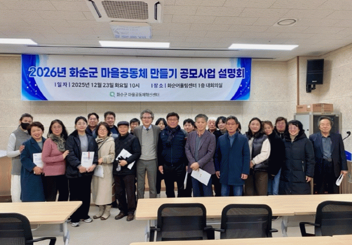 한편, 2026년 마을공동체 만들기 공모사업은 2026년 1월 7일까지 신청할 수 있으며, 기타 자세한 사항은 화순군 마을공동체혁신센터로 문의하면 된다.